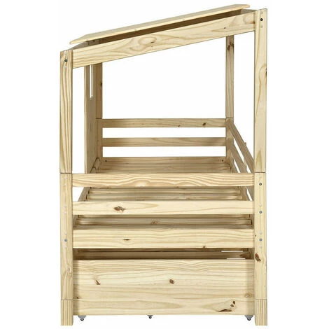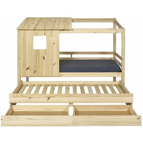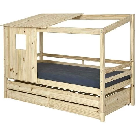 Optez pour le merveilleux lit cabane gigogne Alma pour faire le bonheur de votre enfant. Le style cabane contribue à créer un cocon plein de douceur où votre enfant pourra passer de belles nuits. Le lit vous offre un couchage gigogne vous permettant d’accueillir un copain simplement sans encombrer la chambre de votre enfant. De plus, augmentez votre capacité de rangement grâce aux deux tiroirs intégrés afin de ranger vêtements, livres ou jouets.