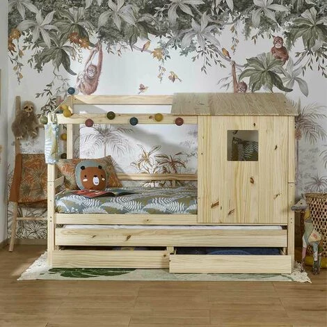 Lit cabane gigogne Alma : Fonctionnel et ludique, il pourra habiter les histoires imaginaires de votre enfant