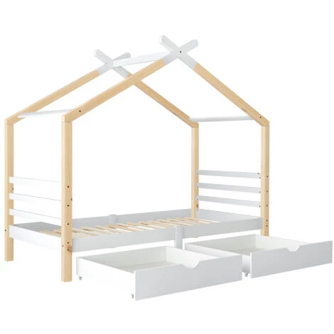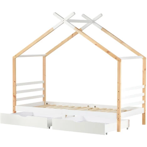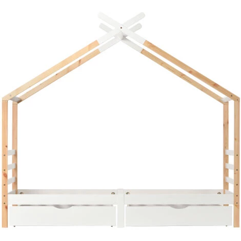 Notre lit cabane présente un design en forme de maison avec un toit fantaisiste. Le design unique vous permet d’entrer dans la chambre de votre enfant