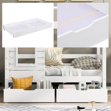 {Grand coffre de lit en 2 parties} – Les deux tiroirs de 77,5 × 82 × 19,5 cm offrent beaucoup d’espace de rangement pour la literie, les jouets et les vêtements ; boîtes spacieuses avec roulettes et poignées encastrées faciles à ouvrir, ou suffisamment d’espace en dessous pour passer l’aspirateur. La taille du lit convient également aux petites pièces.