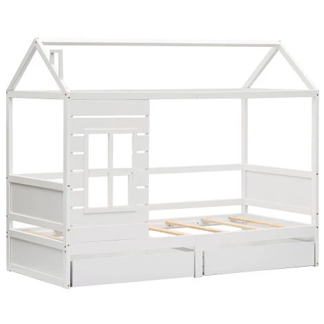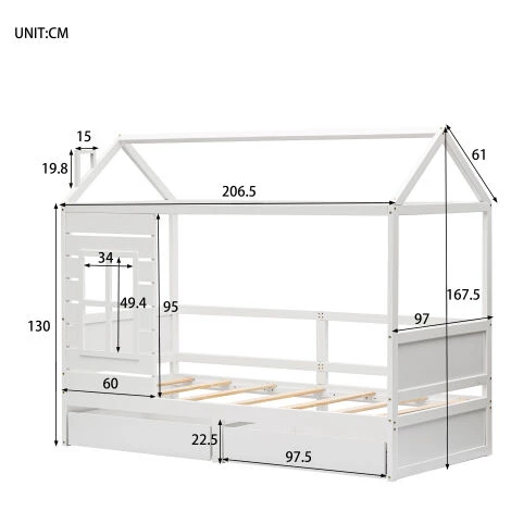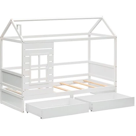 Les deux tiroirs de 92,5×61,5×13 cm offrent beaucoup d’espace de rangement pour le linge de lit, les jouets et les vêtements ; boîtes spacieuses avec roulettes et poignées encastrées faciles à ouvrir, ou suffisamment d’espace en dessous pour passer l’aspirateur. La taille du lit convient également aux petites pièces