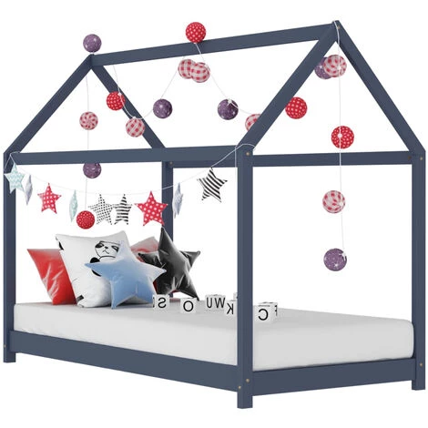 ASUPERMALL Cadre De Lit D’enfant Gris Bois De Pin Massif 80×160 Cm