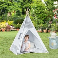 Cette belle tente tipi pour enfants apporte une grande joie à vos enfants adorés. Ce tipi pour enfants, aux dimensions de 115 x 115 x 160 cm, offre suffisamment d’espace pour jouer à l’intérieur. Vos enfants vont adorer beaucoup le motif d’ étoile mignon sur la tente. La maison de jeu dispose de poteaux en plastique, ce qui la rend robuste et stable sur le sol. La toile de tente est fabriquée en polyester solide et durable pour des années d’utilisation. Vous pouvez facilement ranger la tente dans le sac de transport inclus lorsqu’elle n’est pas utilisée ou l’emporter à l’extérieur.