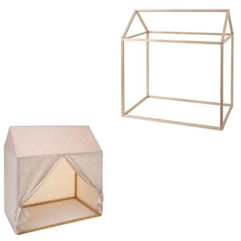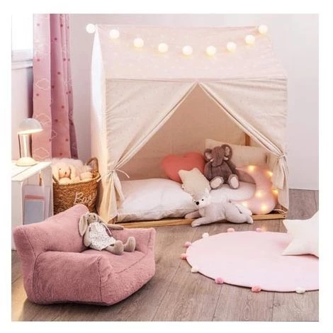 Cabane en pin enfant avec sa toile Rose Atmosphera for kids