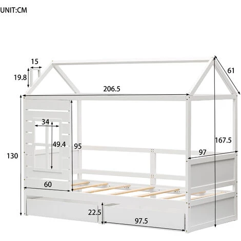 [Fenêtres spéciales] Des fenêtres uniques ajoutent de l’intérêt et de la beauté tout en agissant comme une clôture. Avec des entrées de château pour les jeunes princesses et princes, ou des lits avec des toits et des fenêtres, une architecture troglodytique. L’aspect est naturel grâce au grain de bois légèrement visible.