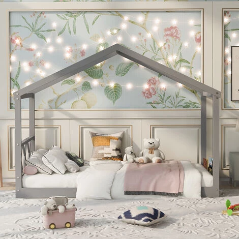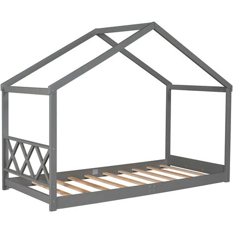Ce lit de maison super cool est parfait pour les enfants. Vous pouvez créer une retraite fraîche dans la chambre et laisser libre cours à l’imagination de votre enfant. Grâce à son cadre polyvalent et simple, vous pouvez le décorer selon la personnalité de votre enfant, par ex. B. avec des tissus drapés, des lanternes suspendues ou des jouets. Ce lit en bois est également parfait pour le coin lecture ou la salle de jeux de votre enfant. Fabriqué en bois de pin massif, ce cadre de lit est très solide et durable. Remarque : la livraison comprend uniquement le cadre de lit et les sommiers à lattes avec une capacité de charge de 160 kg