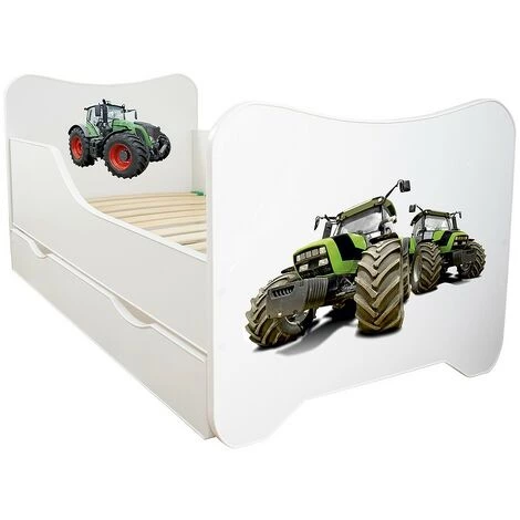 Lit pour enfant modèle tracteur avec tiroir de rangement et Matelas – couchage 70 x140 cm