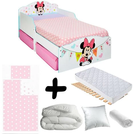 Pack complet LUXE : Lit Minnie Tiroirs Disney + Literie 5 pièces + Matelas