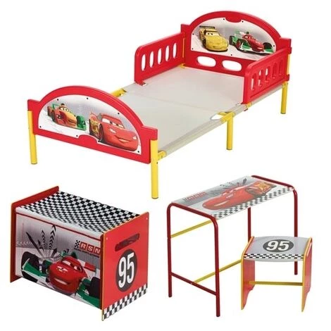 Facile et économique, la chambre pour enfant Disney Cars se compose d’un carton qui contient tout ce dont votre enfant a besoin de 18 mois à 5 ans : un lit, un bureau avec tabouret et un meuble de rangement pour les jouets.