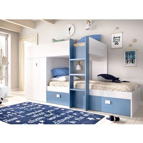 Son design nordique permettra d’apporter de la lumière, de la couleur et du style dont vous avez toujours rêvé pour la chambre de vos enfants. Le lit possède un petit placard pour ranger les vêtements, d’un espace pour deux lits 90 x 190 et de deux tiroirs avec une grande capacité de rangement.