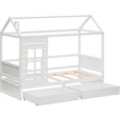 AUTRES Lit Mezzanine Enfant – 140 X 190 Cm – Pin Massif Blanchi – Sommier Inclus – ERIKA