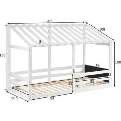 AZKOEESY Lit Cabane Pour Enfant Avec Cheminée En Bois De Pin, 90 X 200 Cm, Blanc (sans Matelas)