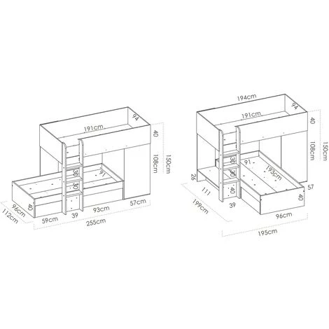 - Pour deux enfants. Le lit supérieur ne convient pas aux enfants de moins de 6 ans.