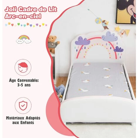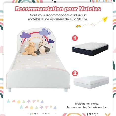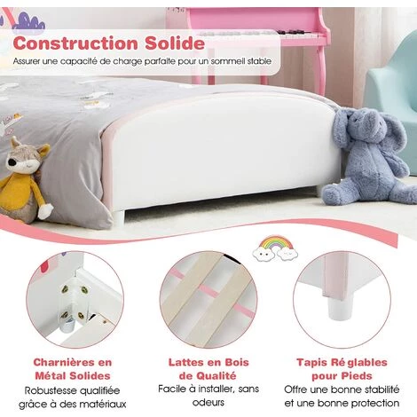 - 【Matériau et construction robustes】Fabriqué en panneau MDF et PVC de haute, notre lit pour enfant présente une excellente robustesse et durabilité, qui peut être utilisé pendant une longue période sans fissure de déformation. De plus, les lattes en bois renforcées offrent un soutien solide à votre enfant.