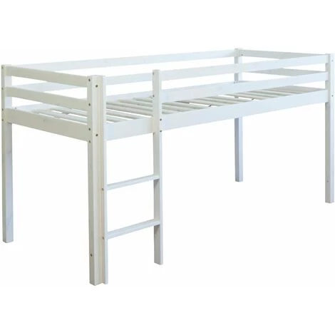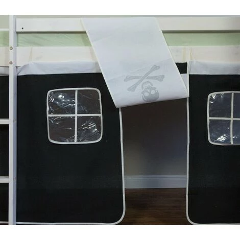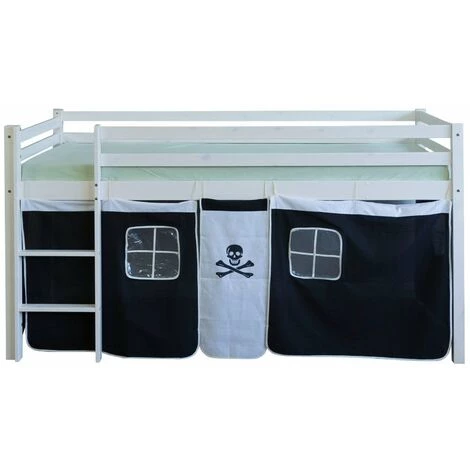 Lit mezzanine avec sommier à lattes et toile de décoration noir pirate incluse.