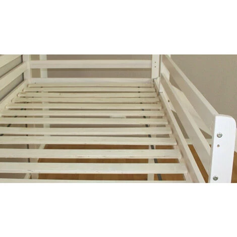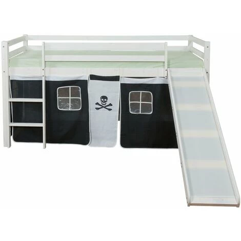 Lit mezzanine avec sommier à lattes et toile de décoration pirate noir incluse.