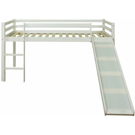 Lit mezzanine mi-hauteur avec sommier à lattes.