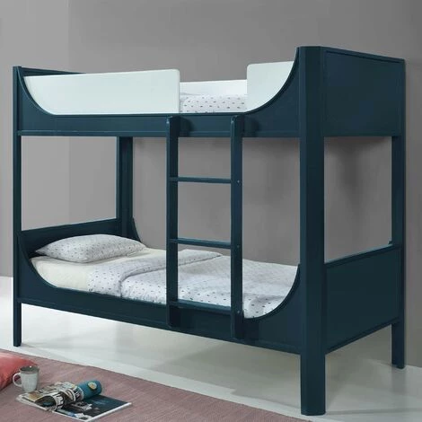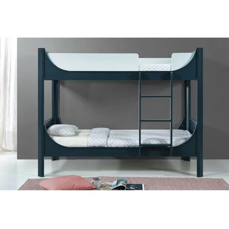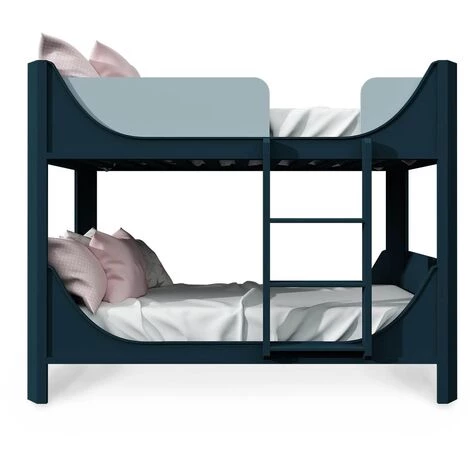 Pensé pour les enfants, ce lit superposé en bois bleu est un meuble qui séduira toute la famille avec ses lignes modernes, douces et arrondie, sa couleur bleu profond / bleu clair et une échelle à larges marches pour un confort parfait et une sécurité optimale.