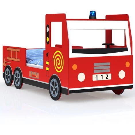 - Lit en forme de camion de pompier rouge avec sommier à lattes