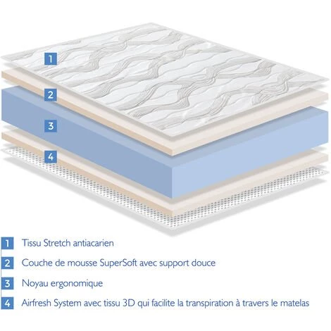 Le modèle ERGO CONFORT est »Le petit prix de Dormalit ». C’est un modèle léger, frais et confortable. Jeune, moderne et minimaliste, capable de surprendre du plus petit de la maison à un public plus exigeant. Il s’agit d’un matelas réversible qui peut être utilisé dans des lits convertibles, des canapés-lits, des lits d’enfants, etc… Économisez sur le prix, mais pas sur la qualité !