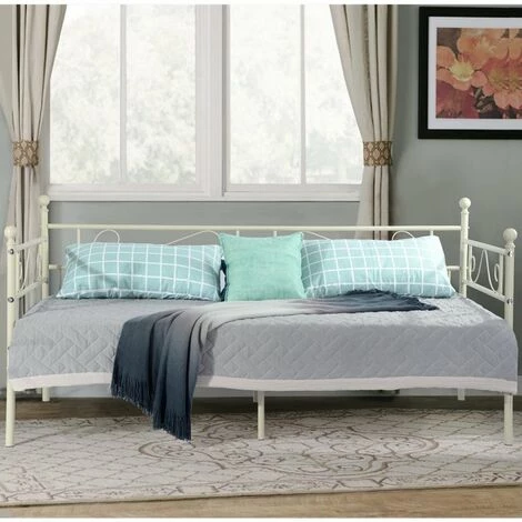 【Lit en Métal】Les cadre de lit sont tous faits de métal, grande capacité de chargement, durable et stable.La surface facile d’entretien protège le lit de la rouille.