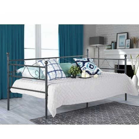 【Lit en Métal】Les cadre de lit sont tous faits de métal, grande capacité de chargement, durable et stable.La surface facile d’entretien protège le lit de la rouille.