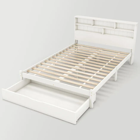 Bois de haute qualité:Le lit de rangement blanc est fabriqué à partir de composants en bois de haute qualité afin de garantir une construction solide et durable. Ce lit compact et fonctionnel vous permettra de mieux vous reposer et de soutenir votre dos !