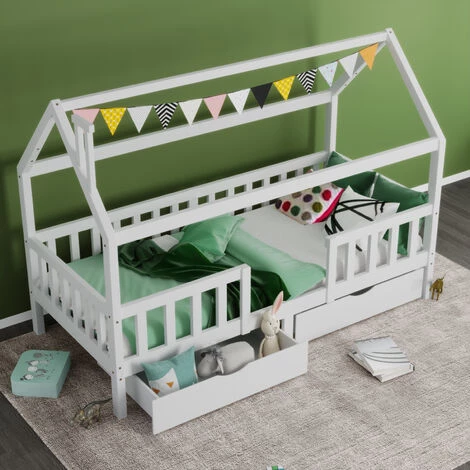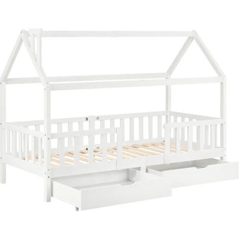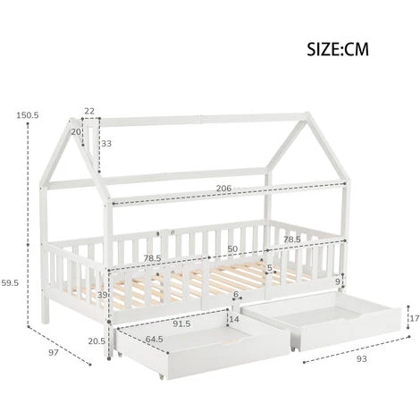Ce lit de maison super cool est parfait pour les enfants. Vous pouvez créer une chambre à coucher cool et laisser libre cours à l’imagination de votre enfant. Grâce à son cadre polyvalent et simple, vous pouvez le décorer selon la personnalité de votre enfant, comme des tissus drapés, des lanternes suspendues ou des jouets. Ce lit en bois est également parfait comme coin lecture ou salle de jeux pour votre enfant. Fabriqué en bois de pin massif, ce cadre de lit est très solide et durable. Veuillez noter : la livraison comprend uniquement le cadre de lit. Les matelas ne sont pas inclus.