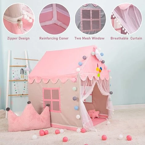Princesse Tente Enfant Fille Tente de Jeux Grand Rose Château de Princesse Tente Intérieure Cadeau pour Enfant Fille avec Sac de Transport