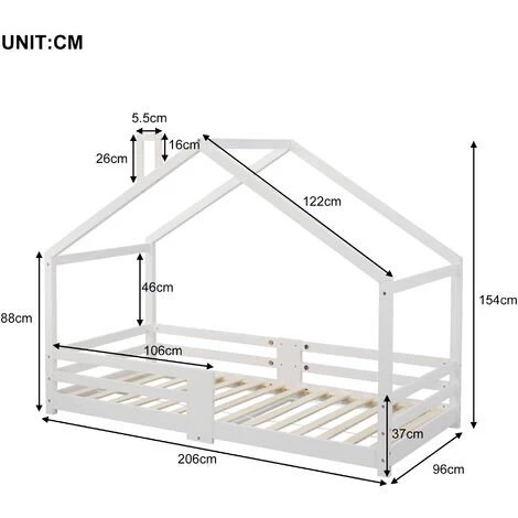 Installation facile : avec des instructions de montage illustrées, il est facile à construire, vos enfants peuvent rapidement profiter du bonheur du produit. Dimensions hors tout : 206 x 96 x 154 cm (L x l x H), la livraison comprend : 1x lit cabane, 1x notice illustrée, outils de montage nécessaires. sans autocollants à l’intérieur du lit