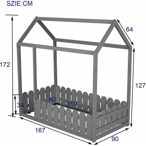 Ce lit maison super cool est idéal pour les enfants. Vous pouvez créer une chambre à coucher cool et laisser libre cours à l’imagination de votre enfant. En raison de son cadre polyvalent et simple, vous pouvez le décorer selon la personnalité de votre enfant, comme draper du tissu, suspendre des lanternes ou des jouets. Ce lit en bois est également parfait comme coin lecture ou maison de jeu pour votre enfant. Ce cadre de lit est fabriqué à partir de pin massif, ce qui le rend extrêmement solide et durable. Remarque : la livraison comprend uniquement un cadre de lit. Les lattes ne sont pas incluses, vous devez préparer des sommiers à ressorts ou des fondations, de sorte que la capacité de charge n’a pas de limite.