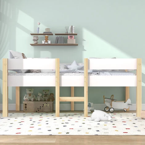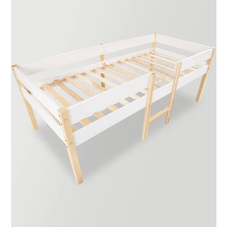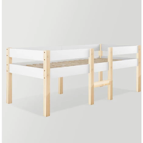 Construction robuste en pin massif : le mini lit mezzanine est composé de deux matériaux extrêmement résistants, idéaux pour une utilisation dans la chambre des enfants.