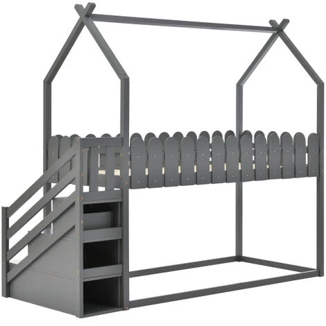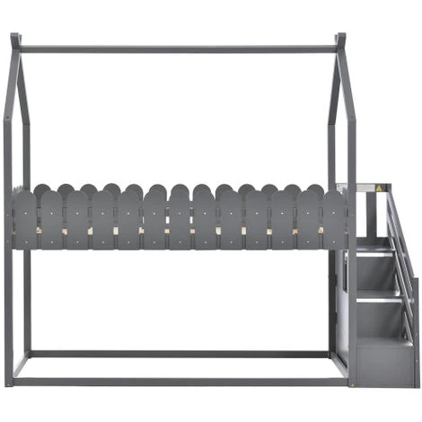 Ce meuble allie les fonctions de jeu et de rangement. Le côté du lit a trois marches et le dessus est en forme de toit croisé, ce qui donne à l’ensemble du produit l’apparence d’une maison familiale à deux étages, pleine d’intérêt et répondant aux préférences des enfants. En même temps, deux des marches offrent deux tiroirs pour un espace de rangement supplémentaire.