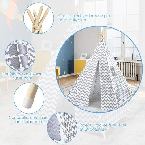 - Pratique et confortable: Notre tipi est livré avec un tapis rembourré et antidérapant, offrant aux enfants un endroit plus confortable pour jouer, lire et prendre une photo. Ces designs uniques ont fait de notre tipi le plus confortable et le plus facile à utiliser. Nous avons ajouté une fenêtre pour une bonne circulation de l’air.