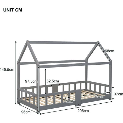 Avec des instructions de montage illustrées, il est facile à construire, vos enfants peuvent rapidement profiter de la gaieté du produit. Dimensions totales : 206 x 96 x 145.5 cm (L x l x H), livraison comprenant : 1x lit de maison, 1x instructions illustrées, outils de montage nécessaires (sans craie ni gomme). sans autocollants à l’intérieur du lit.