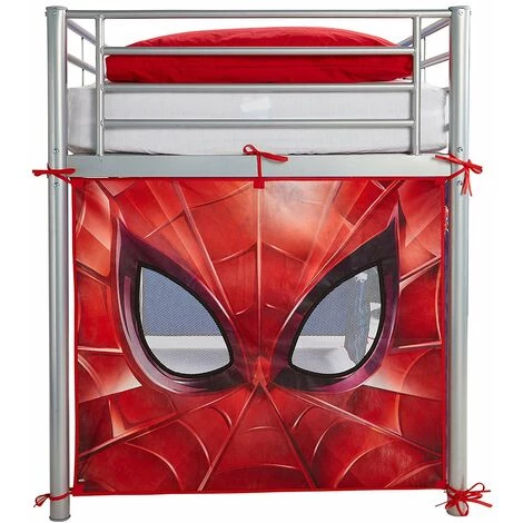 Habillage pour lit surélevé bleu/rouge motif Spider-Man avec 3 panneaux en tissu imprimé à installer autour du lit pour créer une petite cabane secrète. La porte rabattable et les fenêtres en maille créent un espace de jeu idéal. Installation simple et rapide. Les panneaux en tissu sont dotés de cordons et s’adaptent aux lits surélevés standards dont les dimensions sont comprises entre 190 et 200 cm. Dimensions : L 195 x P 86 x H 74 cm. Matière : MDF. Couleur : bleu/rouge motif Spider-Man. Poids : 0.25 kg