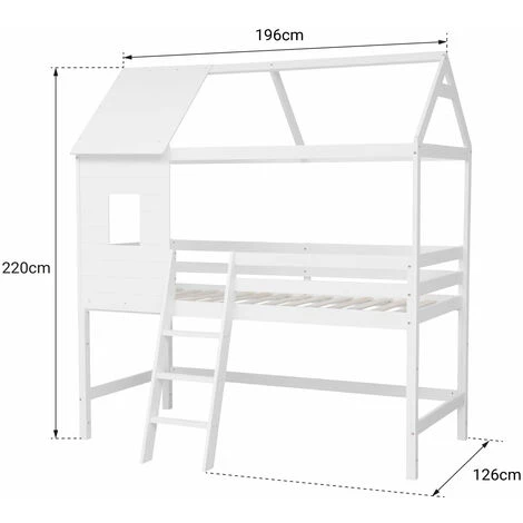 Vous cherchez le meuble idéal pour compléter la chambre de votre enfant ? Optez pour ce lit cabane mezzanine blanc ! Le modèle MARGOT est parfait pour stimuler l’imagination de nos bouts de chou tout en leur permettant d’avoir un espace nuit bien à eux. Ils pourront accéder à leur couchage de 190 x 90 à l’aide d’une petite échelle et le tour de lit empêchera toute chute accidentelle pendant la nuit. Ce lit d’enfant est conçu avec une structure robuste en bois de pin et comporte un sommier à lattes qui assure le confort des enfants pendant leur sommeil. Vous disposez aussi d’un grand espace de rangement supplémentaire en dessous du lit, qui peut aussi être aménagé en espace de jeux ou de lecture pour les petits.