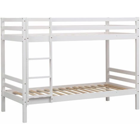Choisissez un meuble pratique qui facilitera l’aménagement de la chambre d’enfant. Happy Garden vous propose le lit superposé AMBRE, simple à monter et à intégrer même dans une petite pièce. Il pourra ainsi accueillir vos deux enfants et leur permettra de passer de douces nuits de sommeil. Ce lit pour enfant comporte donc deux couchages, un inférieur et un supérieur accessible facilement grâce à son échelle verticale. Disponible en blanc, il a été conçu dans une solide structure en pin et dispose d’un sommier à lattes pour chaque couchage. Il ne vous reste plus qu’à ajouter un matelas adapté aux dimensions 190 x 90 et d’agrémenter d’un oreiller ainsi que d’une belle parure de lit.