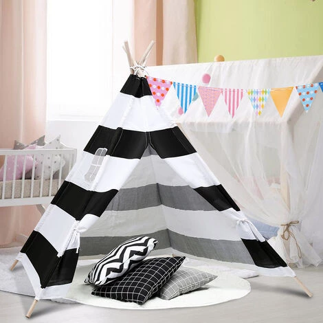 Hengda Tipi Tente Pour Enfants Tente De Jeu Indienne Avec Sac De Rangement 120x120CM – Noir