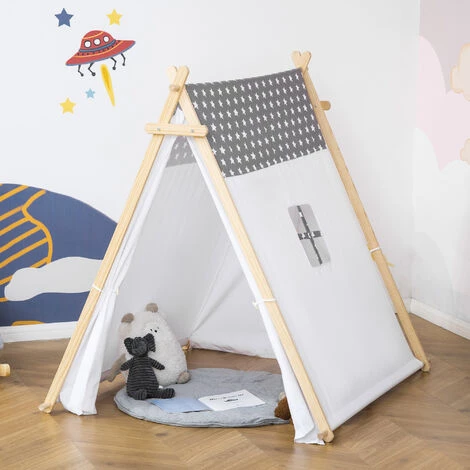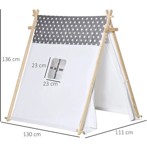 Ce joli teepee enfant avec structure en bois de sapin et toile en polyester coton motif étoiles sera le nouvel atout charme de votre intérieur/extérieur et le nouveau coin repos de votre enfant. Equipée de 2 portes refermables, d’une fenêtre et très facile à ranger, monter, cette tente enfant deviendra vite incontournable.