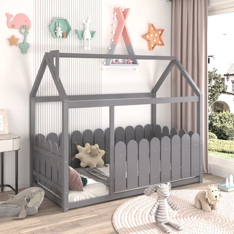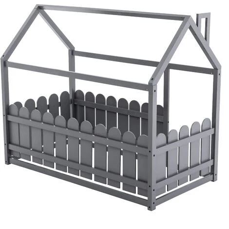 Avec toit et clôture, ce lit unique crée un espace intéressant et charmant, non seulement une zone de couchage confortable, mais aussi un endroit où les enfants peuvent jouer.