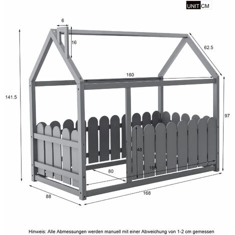 Vous devez préparer un sommier à ressorts ou un sommier afin que la capacité de charge ne soit pas limitée.Le lit convient à un matelas 80×160 (hors matelas).