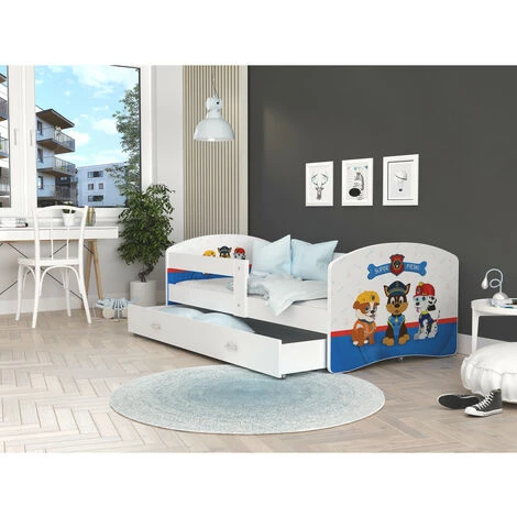 LIT ENFANT Happy 80×160 couleur finitions livré avec sommier, tiroir et matelas en mousse de 7cm. Ce lit s’intègre parfaitement dans toutes les chambres d’enfant, grâce à un design simple et moderne. Ce lit enfant se distingue par ses jolies formes et des couleurs vives. Ce genre de lit convient très bien à un enfant, à partir de 3 ans grâce à sa barrière de sécurité supplémentaire qui protège des chutes de jeunes enfants. Le lit est fourni avec tiroir pour ranger votre linge ou des jouets. Le meuble en Mdf lui garantit une bonne durée de vie. Nos lits sont fournis dans les colis en carton, en pièces détachées pour l’auto-assemblage.