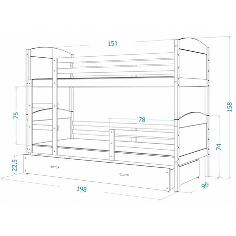 - Dimensions du lit : Longueur : 198cm, Largeur : 96, hauteur : 158cm