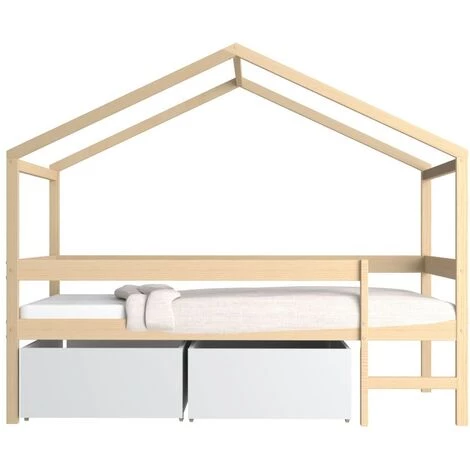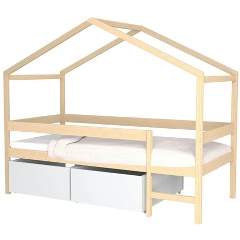Sous ses airs de petite maison, le lit MIKA est bien plus qu’un lit !! C’est un véritable élément de déco qui transformera la chambre de votre enfant en un espace cosy et douillet qui laisse place aux rêves. De part, sa forme de cabane, il permettra à l’enfant de laisser libre court à son imagination et de créer un espace qui lui ressemble. Très pratique, il dispose de deux grands tiroirs montés sur roulettes : idéal pour ranger les jouets et affaires en un tour de main.
