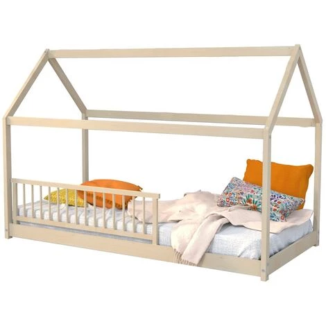 Lit cabane PANDA 90 x 190 cm + barrière de lit pliante*