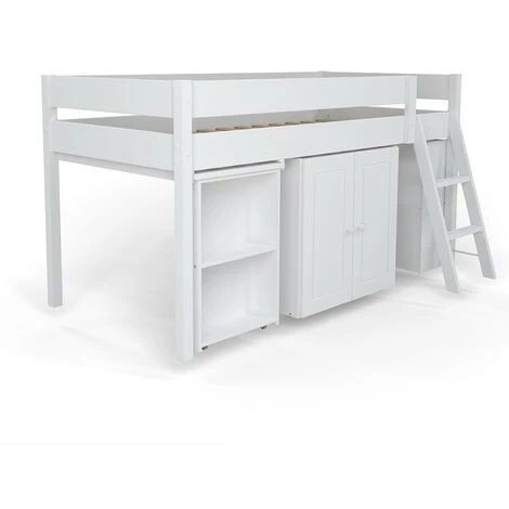 Lit combiné TINO 90 x 190 cm avec bureau, étagère et armoirette deux portes