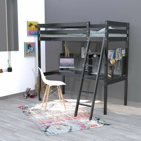 Lit mezzanine STUDIO 90 x 190 cm + bureau + étagère