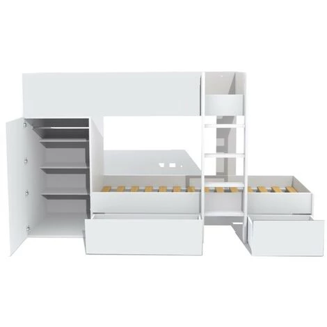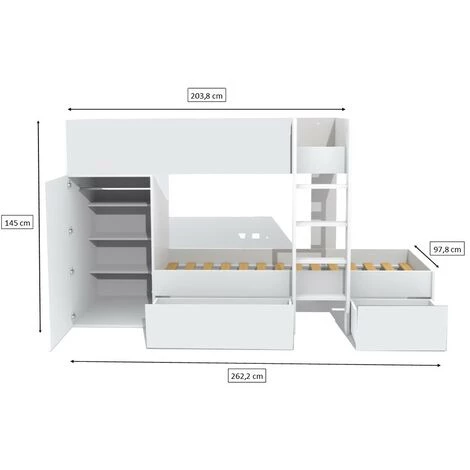 Lit superposé TWIN 90 x 190 cm avec armoire et 2 tiroirs de rangement