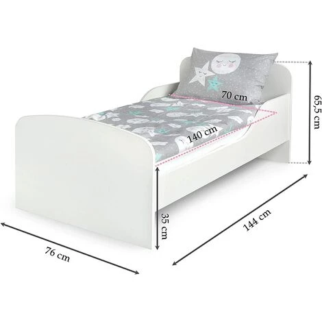 - Le paquet contient un matelas 140 x 70. Panneaux latéraux doucement surélevés au niveau de la tête pour limiter la menaçe de tomber parter pendant le sommeil d’enfants